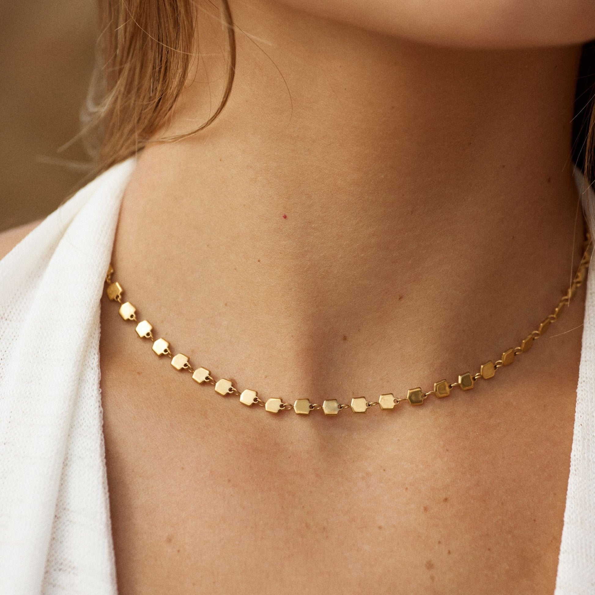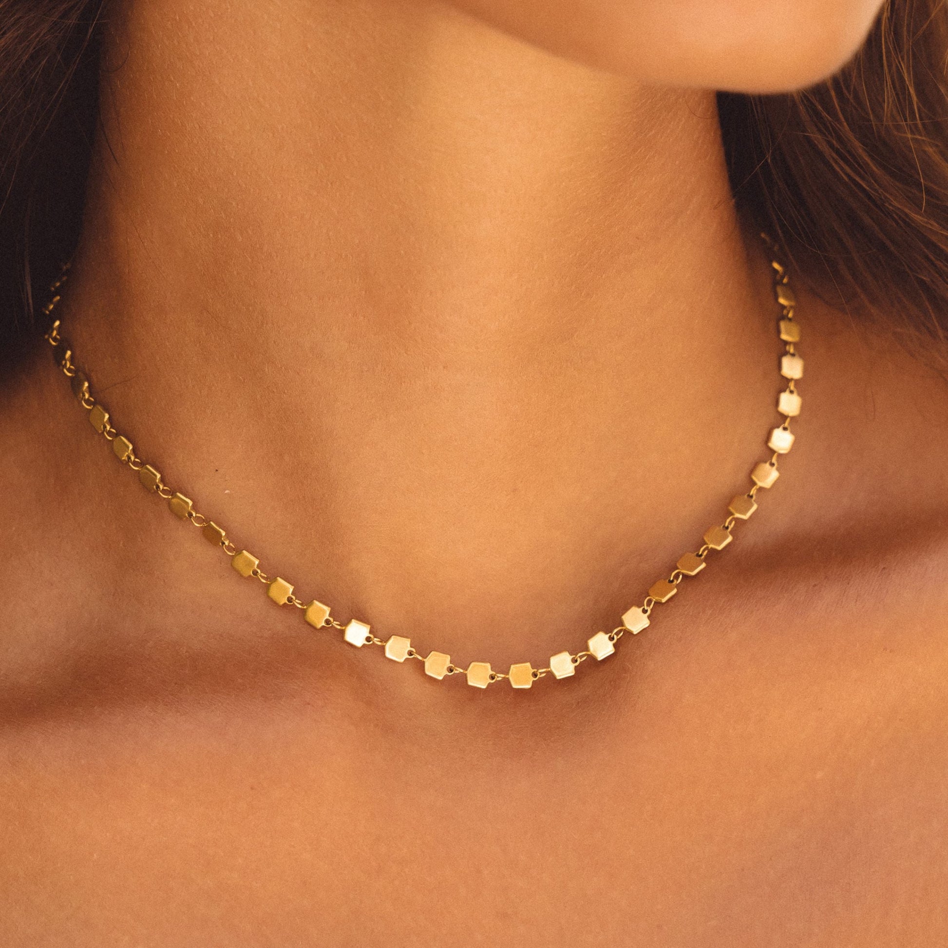 A touch of golden radiance, the Ilios Choker is designed to shine with you—every single day. Inspired by the warm glow of the Mediterranean sun, its unique, reflective design catches the light from every angle.